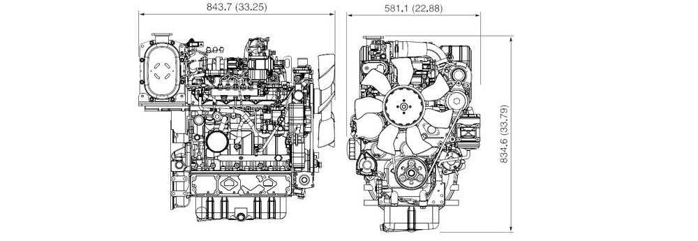 Değişik endüstriyel donanımların yapılandırmalarına uyarlanabilmeleri için motor radyatör fanının iki ayrı yükseklik seçeneği mevcuttur.